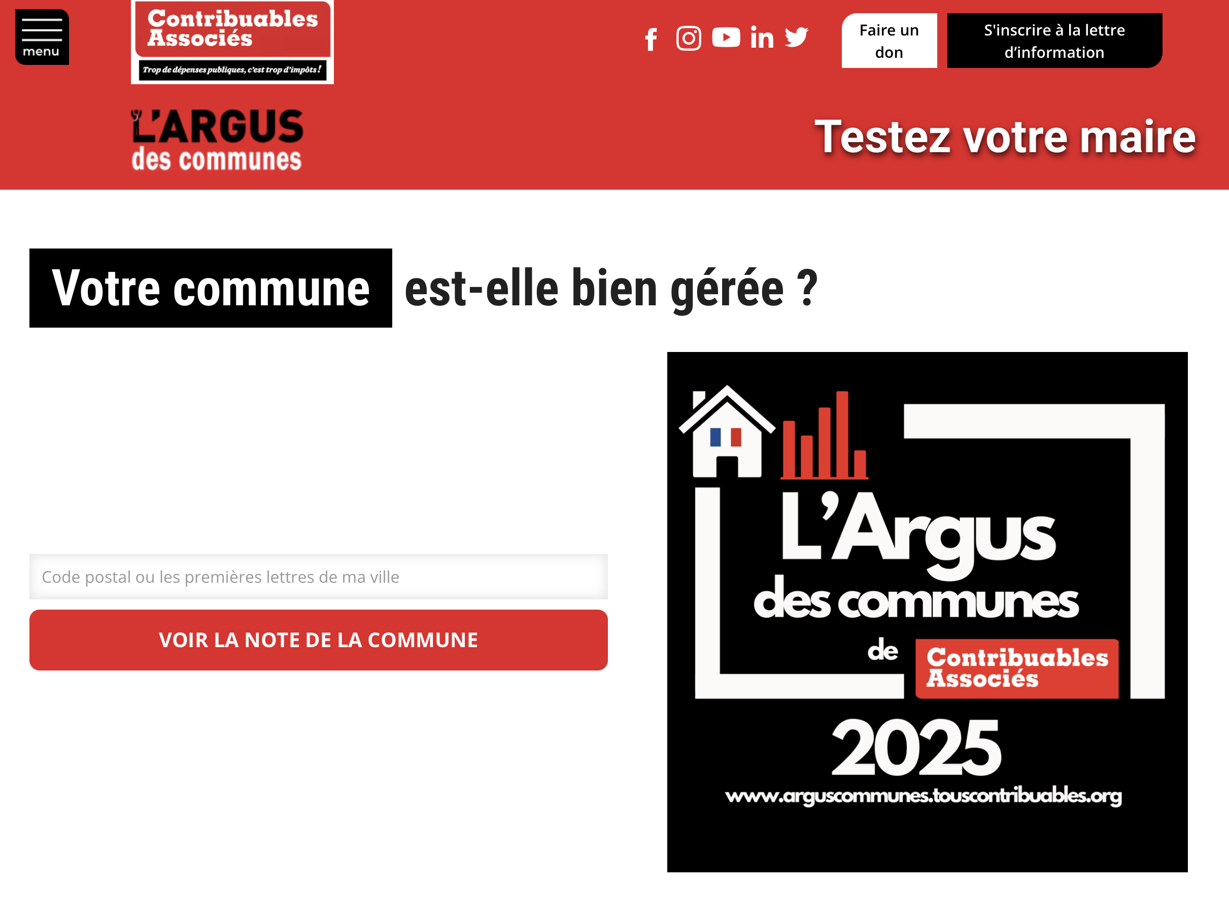 L‘association Contribuables associés dévoile son Argus des communes de l’année 2025, qui consiste à évaluer le niveau de dépense publique des 34 926 communes françaises. Le principe est simple : évaluer chacune des communes de France sur le critère de la dépense publique par habitant. Plus la commune est dépensière par rapport à la moyenne des communes de même taille, plus sa note est faible. C’est le principe de l’Argus des communes, un classement mis en place par l’association Contribuables associés.