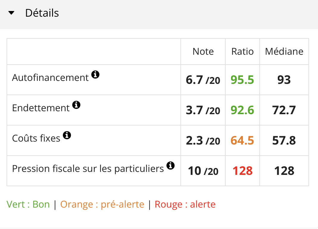 Dans l’Argus des communes de l’association Contribuables Associés, le ratio de dépense par habitant correspond principalement aux dépenses de fonctionnement par habitant de la collectivité. Ce sont les dépenses engagées chaque année pour fournir les services publics locaux (écoles, voirie, services sociaux, déchets, etc.) ; on y trouve par exemple les salaires, achats, subventions, charges diverses. Cette mesure ne correspond pas directement à la fiscalité par habitant (c’est-à-dire aux impôts locaux payés par chaque habitant). Elle sert plutôt à juger l’intensité de la dépense publique locale, pas le montant des prélèvements. La fiscalité locale par habitant (impôts locaux/nb d’habitants) est un autre ratio distinct qui mesure combien chaque habitant paie en moyenne (taxe foncière, taxe d’habitation résiduelle, etc.). Ces impôts financent les dépenses de fonctionnement, mais ils incluent aussi la part revenant à l’intercommunalité ou d’autres échelons.