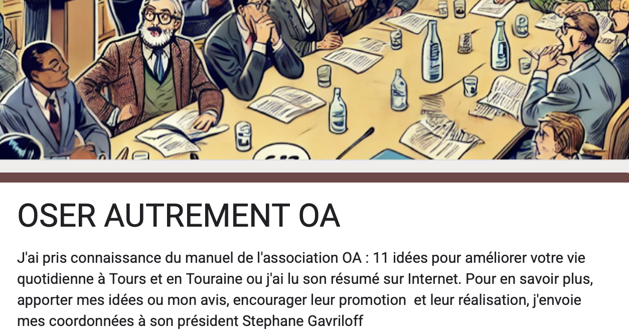 OA prépare la réalisation de 3 manuels mais aussi des idées de sorties, des conférences, des balades. Il s’agit d’apporter une contribution et tenter de limiter le développement de la violence urbaine, mieux accompagner le citoyen dans les évolutions de sa vie quotidienne.